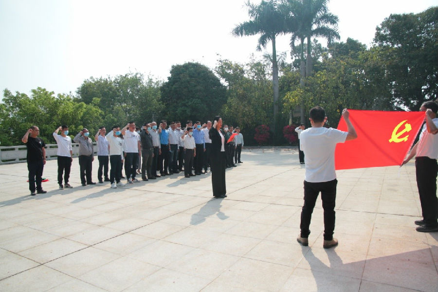 在烈士陵園前,全體黨員干部同志進行了奏國歌、黨總支書記、董事長致悼詞、默哀、獻花、重溫入黨誓詞等活動,表達了對革命先烈的無限哀思及崇敬之情。