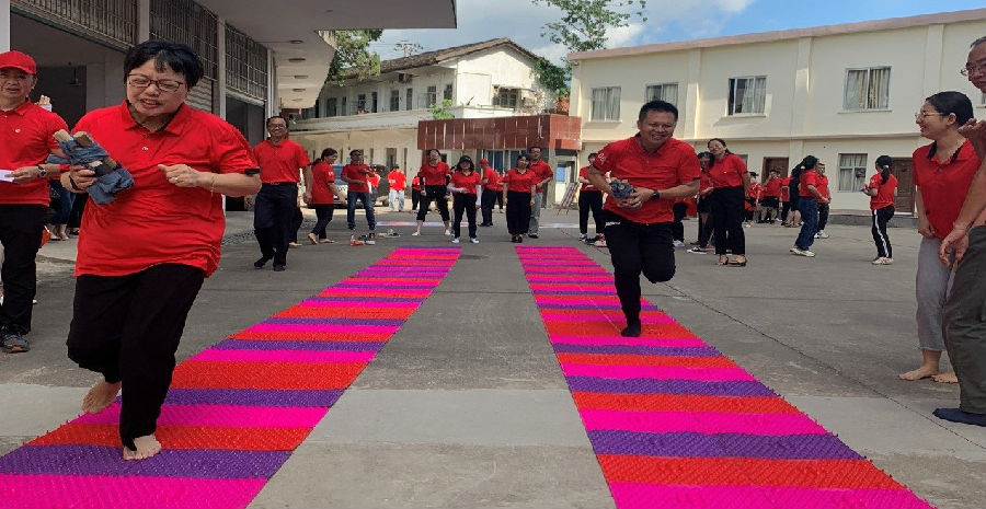 活動伊始,主持人簡單介紹了本次游園會活動目的、流程及游戲規(guī)則,一番熱鬧的開場后本次游園會正式開始?;顒庸苍O(shè)置了三個團(tuán)隊游戲和五個個人游戲。